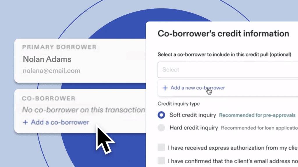 - Add and manage co-borrowers directly from the financial profile or credit pull modal.