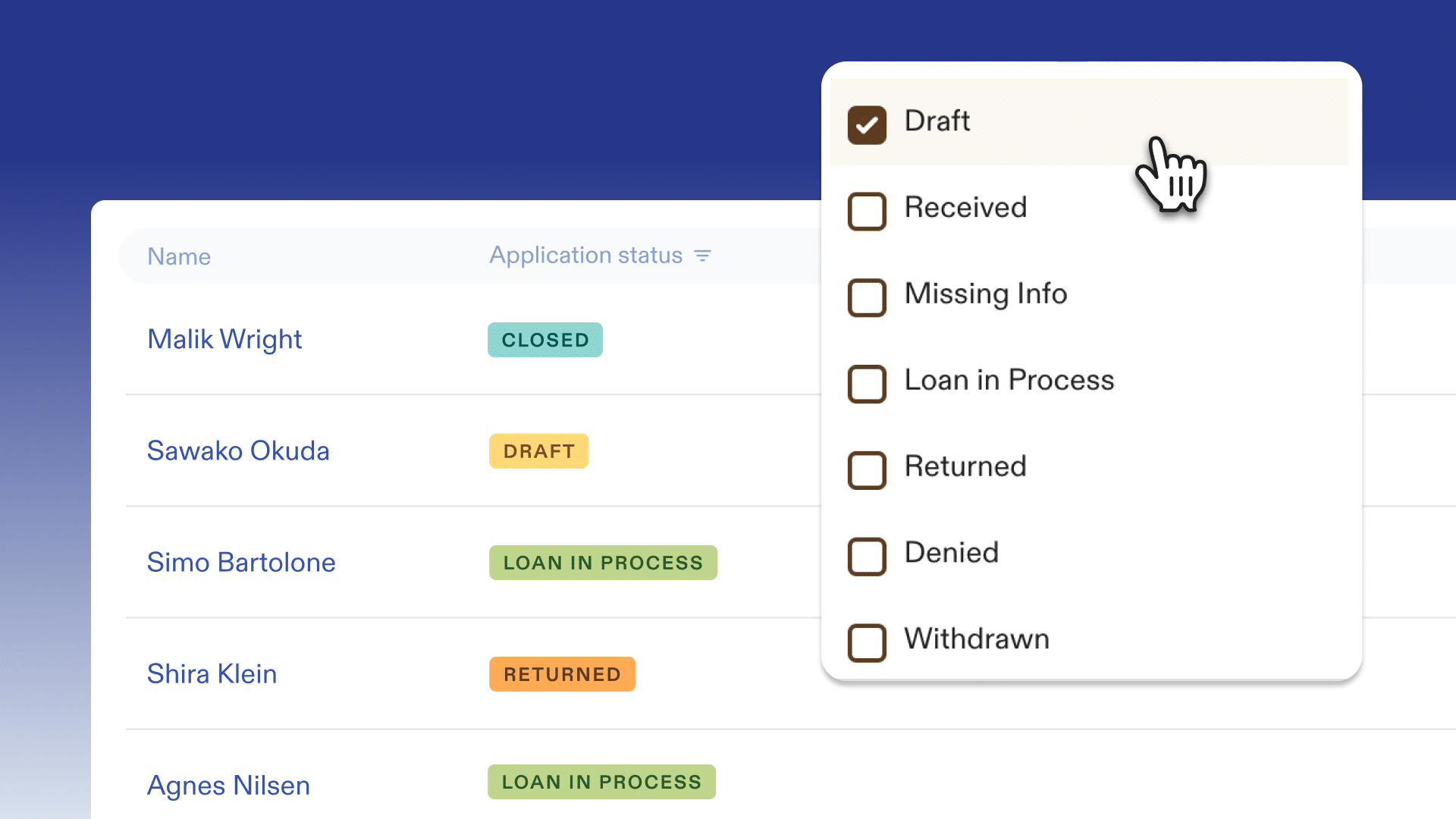 - Centralized Status Tracking: View the current state of any loan application directly in Hemlock — no more switching between tools.